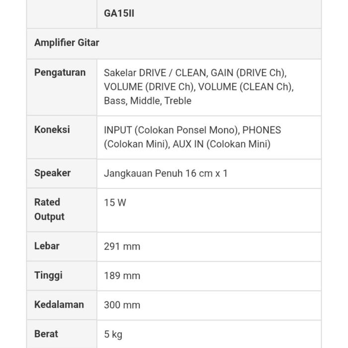 GA15II adalah pilihan terbaik untuk latihan gitar Anda. Dengan AUX in, Anda dapat bermain bersama MP3 player. Spesifikasi lengkap memastikan kenyamanan dan fleksibilitas penggunaan.
